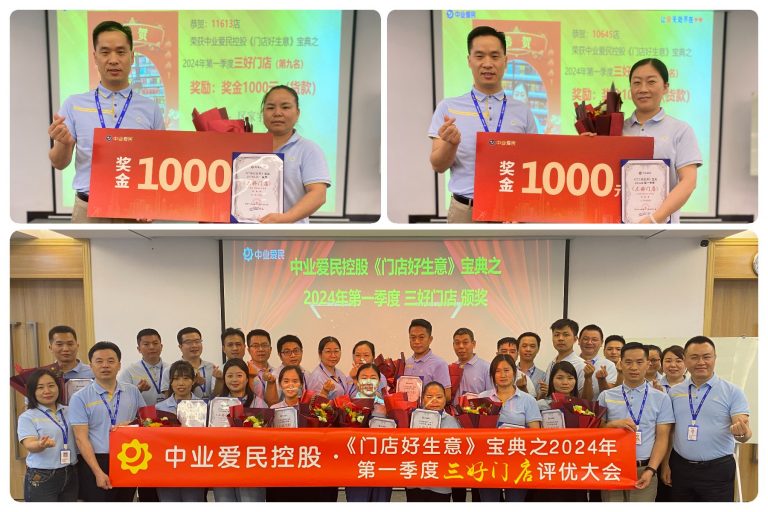 2024年4月19日下午,中业爱民控股在深圳总部隆重举行了中业爱民控股《门店好生意》宝典·三好门店2024年第一季度评优大会。这次大会不仅是对过去一季度里表现卓越的三好门店的肯定与表彰,更是给其他门店树立三好门店的标杆与榜样,学习标杆帮助门店提升客户体验与价值,从而提升门店业绩。